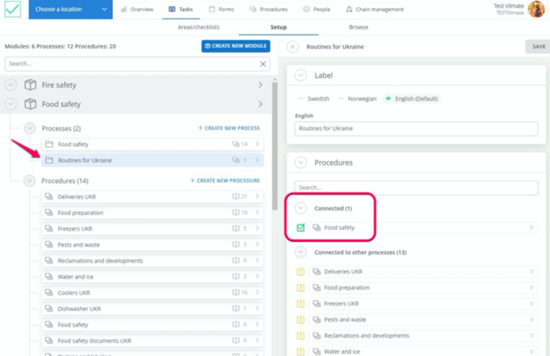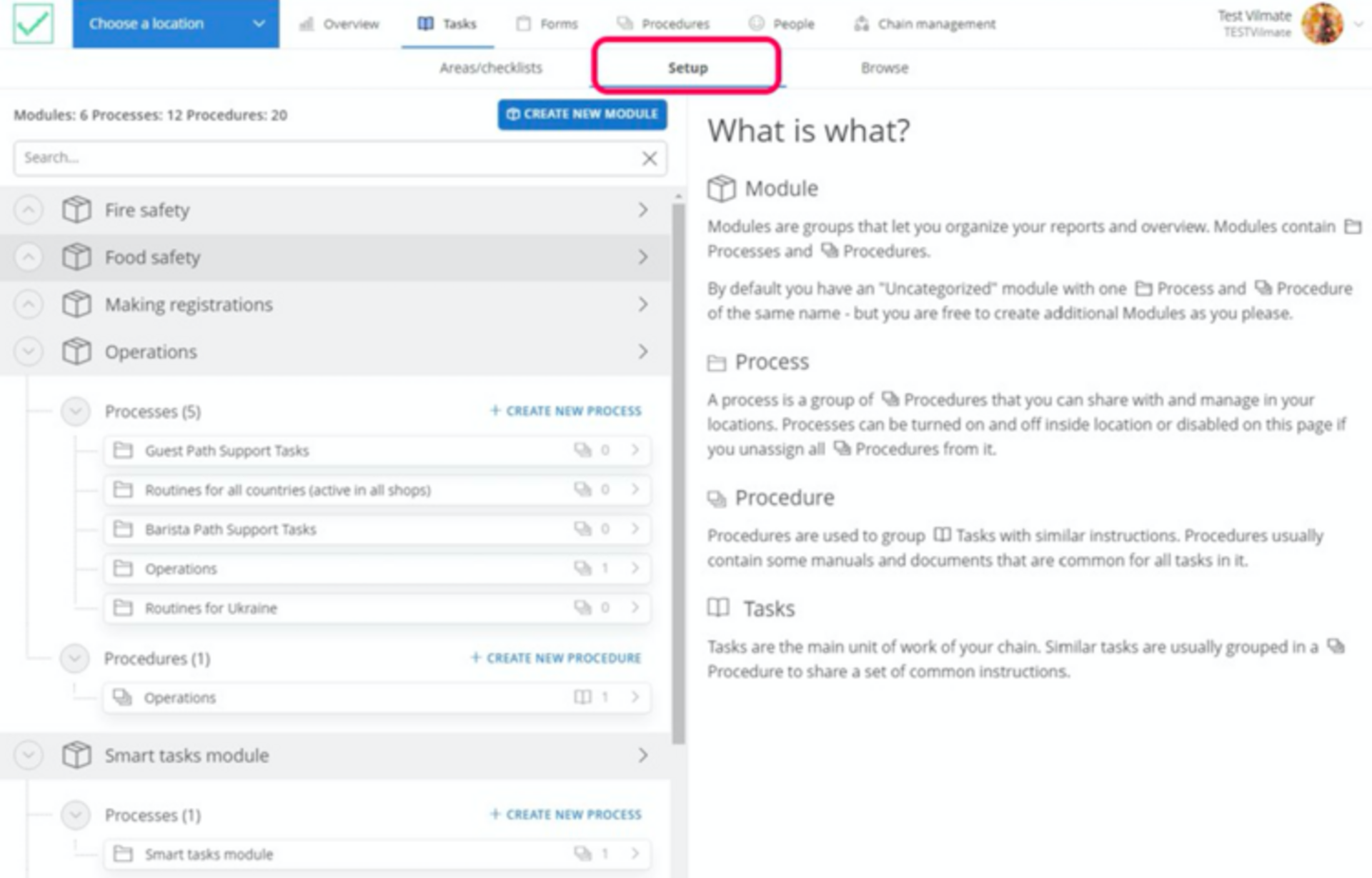 New page called “Setup” that combined three “old” pages: Central Modules, Central Processes, Central Procedures.