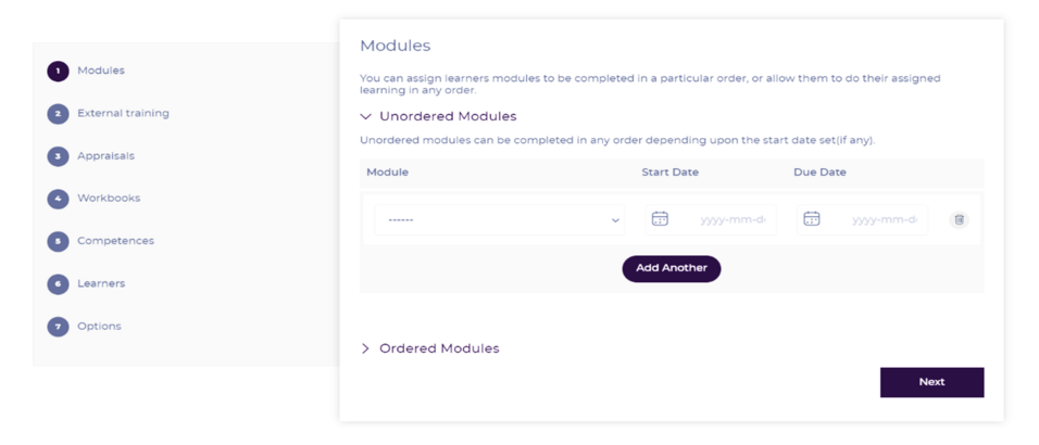 - Select your Allergens module from the drop-down list and add a due date (i.e., when would you like this to be completed by). (Tip: we’d recommend leaving start date blank as ideally, you’d want your learners to access this content straight away).