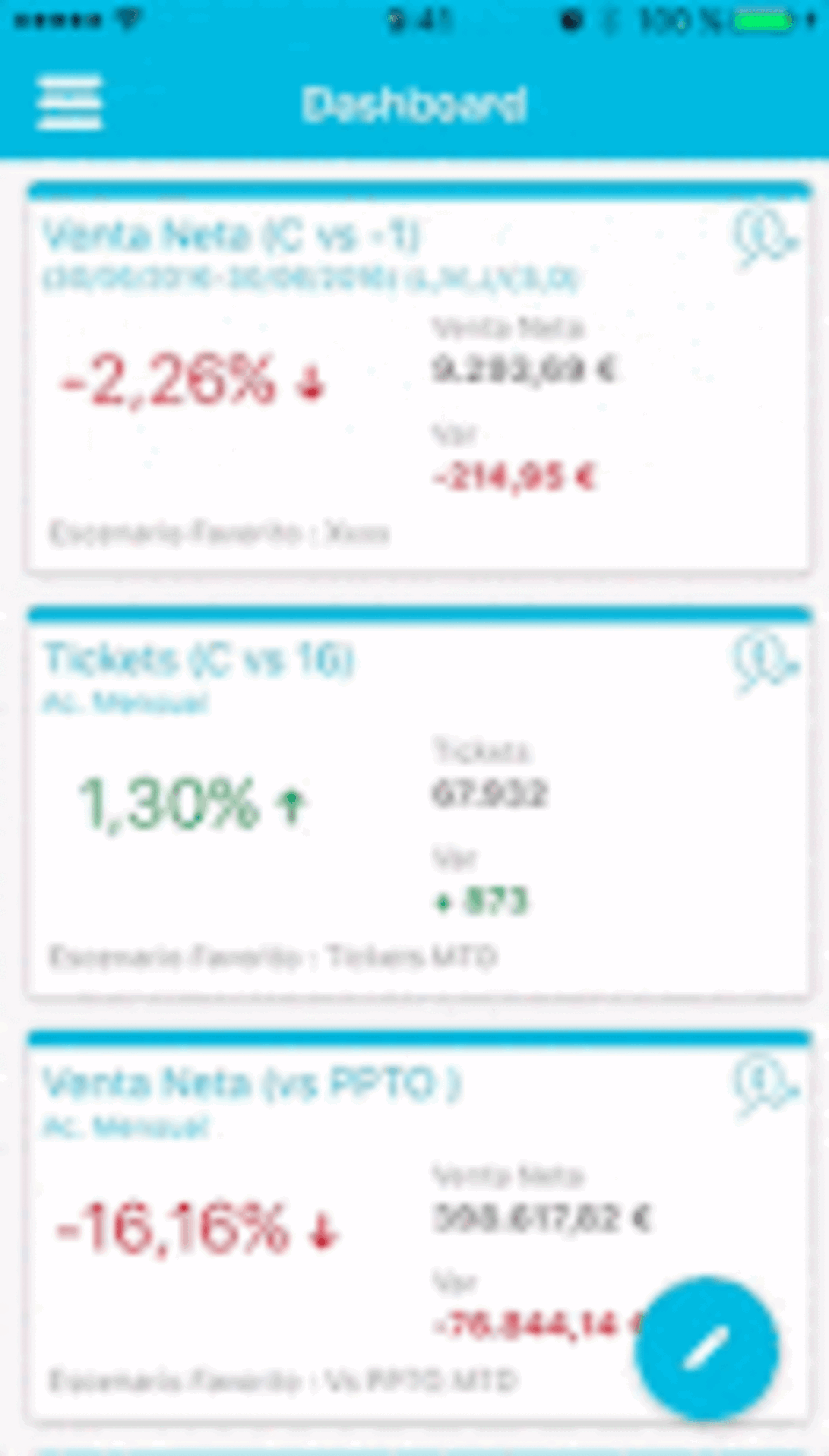 4. Dashboard mejorado para que el usuario pueda ver todos los datos y hacer comparaciones con el mismo día, año, etc., además de personalizarlo con los datos clave a través de favoritos. Ahora es posible crear tarjetas personalizadas e incluir tantas como necesites en el dashboard/panel de mando.