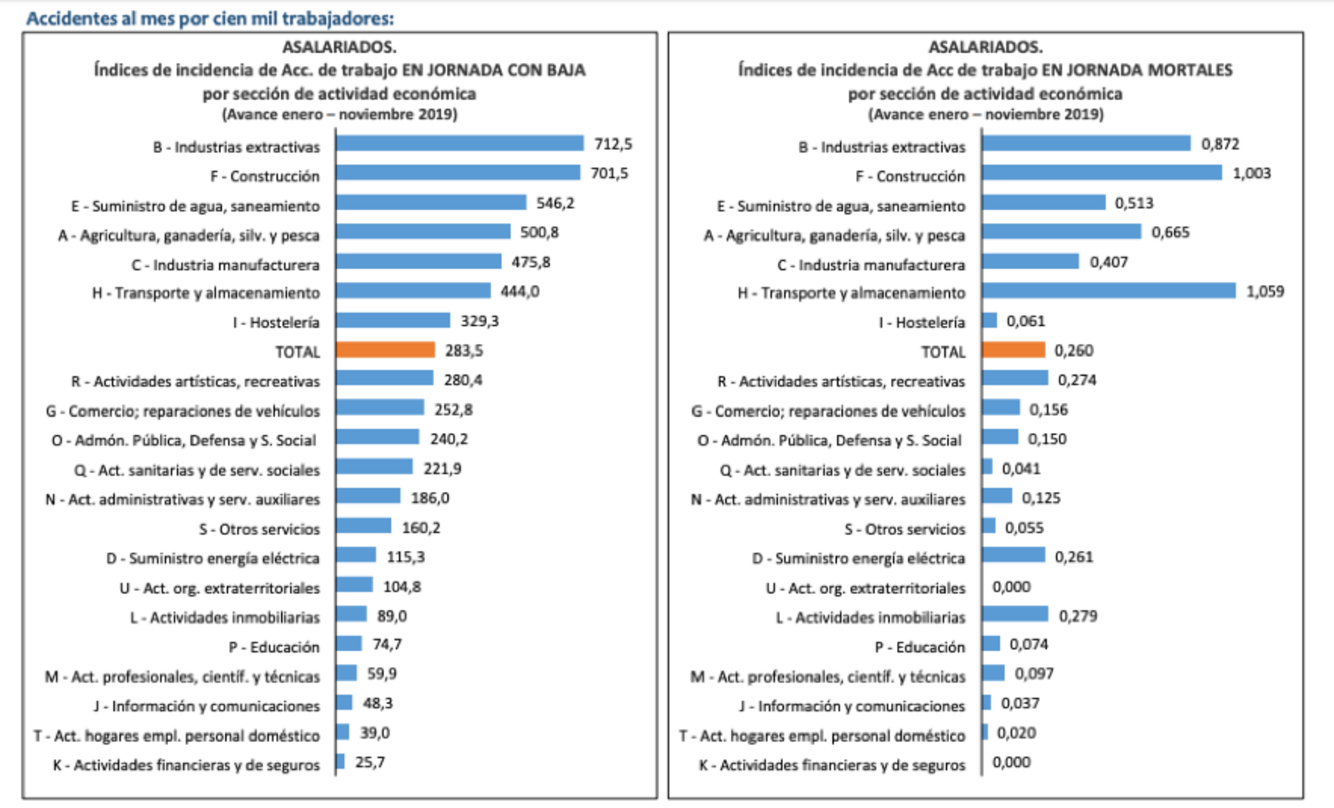 Según los últimos datos del Ministerio de Empleo y Seguridad Social en España, entre enero y noviembre de 2019 el sector de la hostelería se situaba en séptimo lugar tanto en bajas como en mortalidad por accidentes laborales. Se encuentra por debajo de otras actividades como la industria, el transporte o el almacenamiento y la construcción.