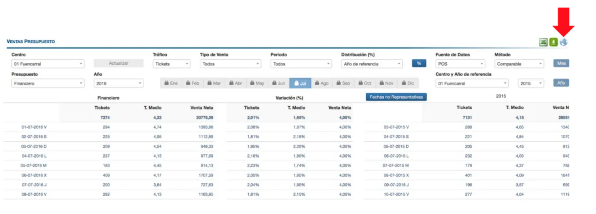 - Analizar cualquier magnitud (Ventas, Tráfico, Ticket Medio y Ticket Medio por Cliente)