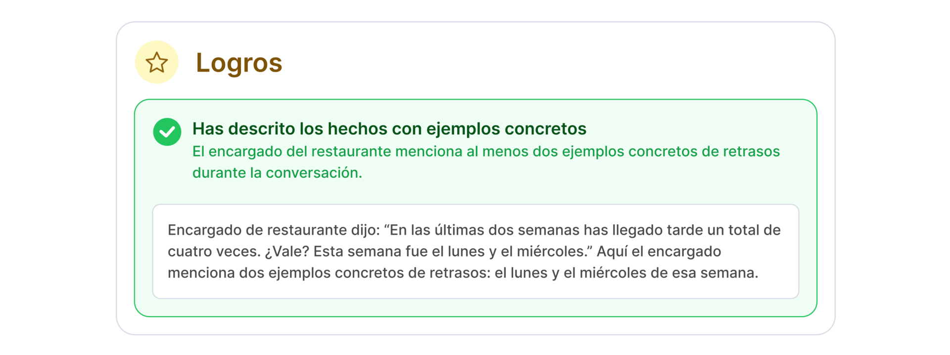 RealPlay está pensado como un espacio seguro para practicar. Si cada interacción se evaluara como un examen, muchas personas dejarían de experimentar o probar nuevas respuestas.