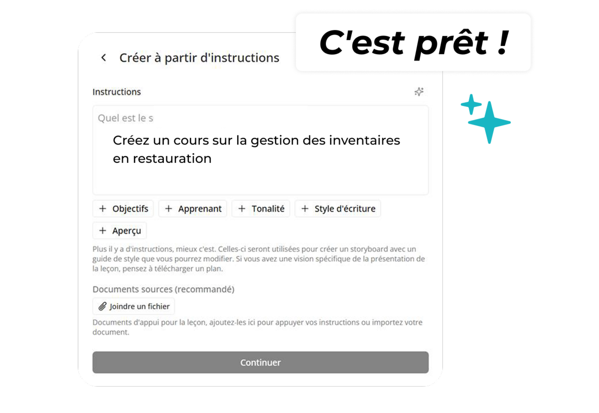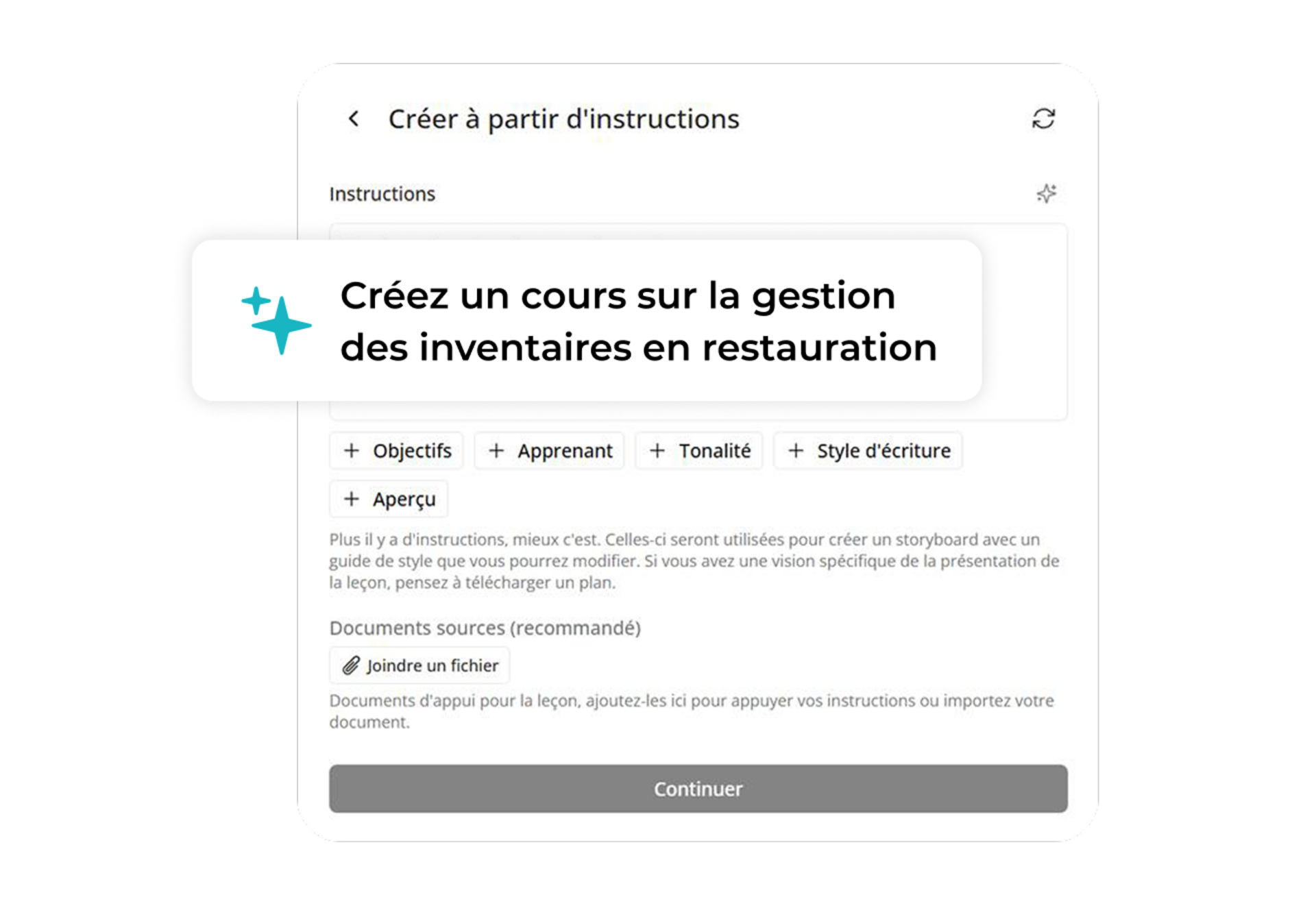 Créez en quelques minutes des contenus formations engageants et adaptés à votre marque grâce à l'IA.